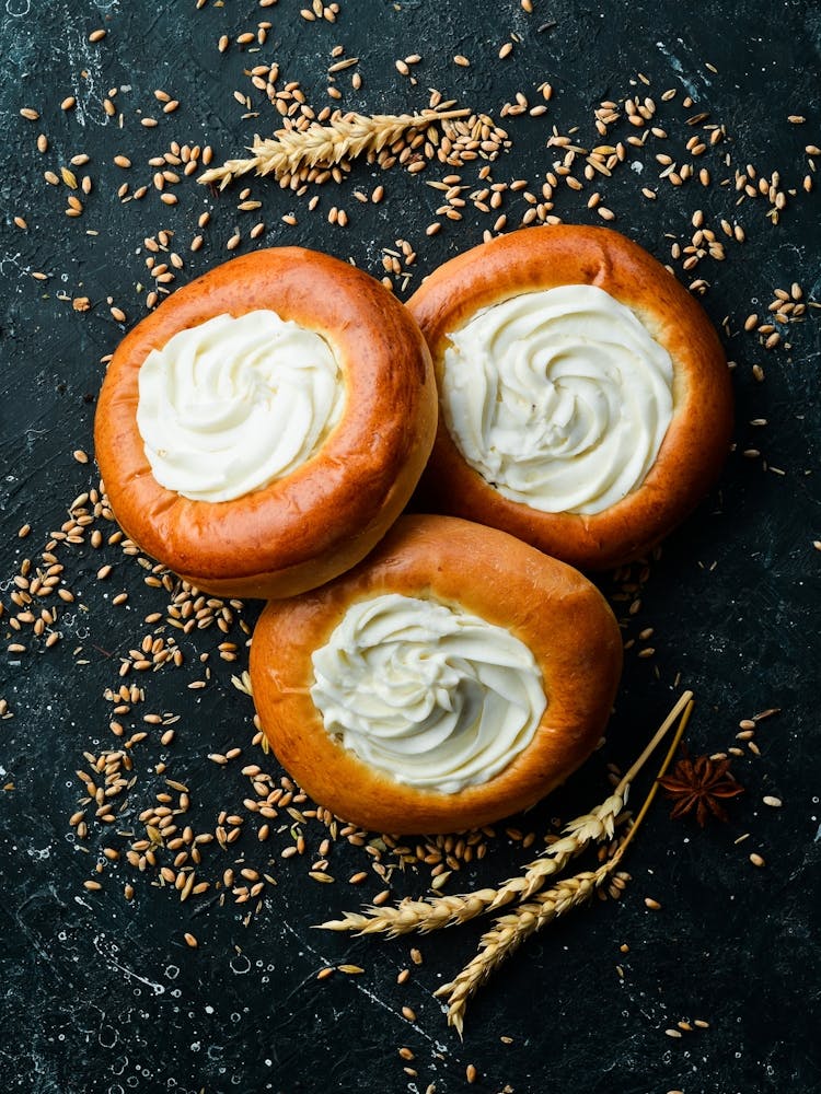 Buns, Bakery sweet buns — Food kitchen poster/blackboard, photo art