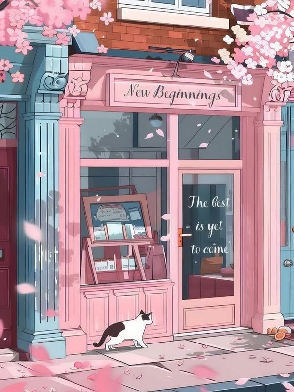 Cherry Blossom Print Bookshop Print Coffee Print Cafe Wall Art Prink Wall Art Kitchen Print Dreamy Print Pink Illustration Print Download(1) -