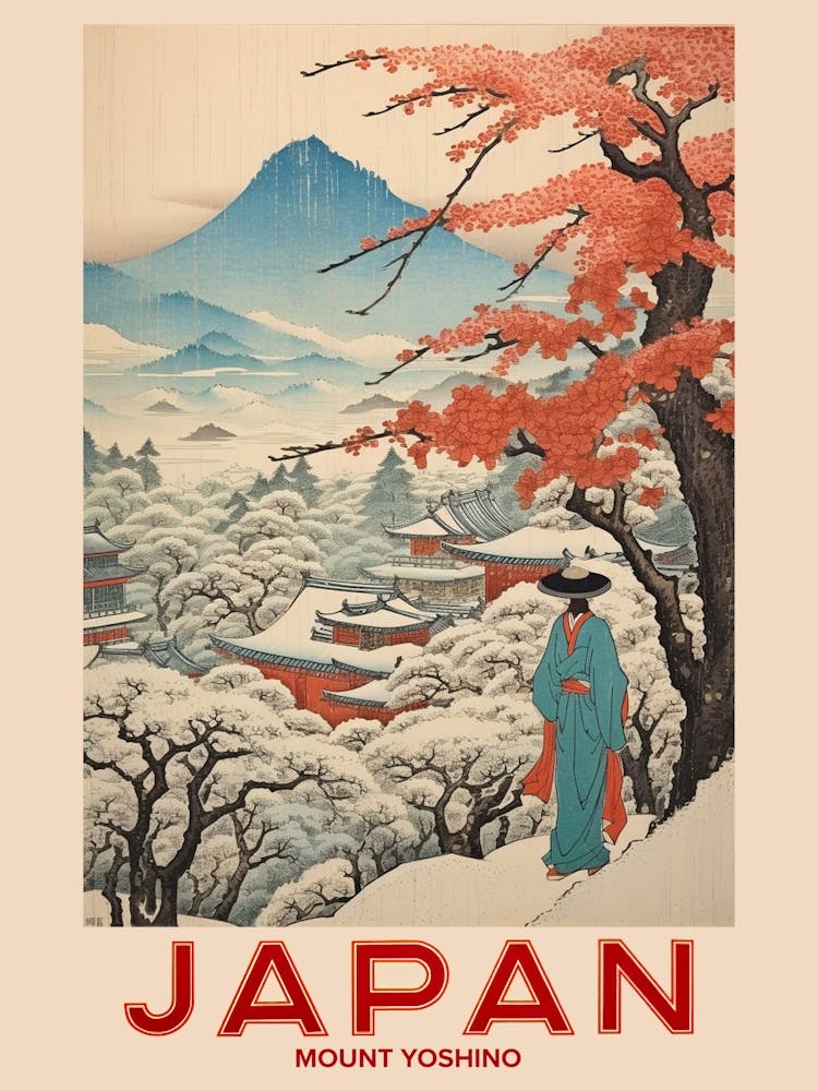 Mount Yoshino, Visit Japan Vintage Travel Art 3 -