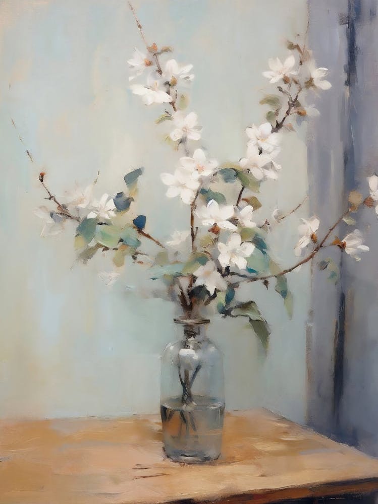 • Flower Vase Still Life Painting, Vintage Kitchen Print, Neutral Flowers Oil Painting, Farmhouse Printable Decor, Antique Still Life Painting