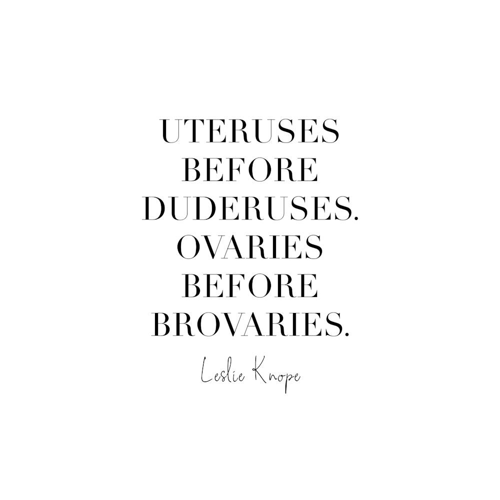 Uteruses Before Duderuses. Ovaries Before Brovaries Leslie Knope Quote