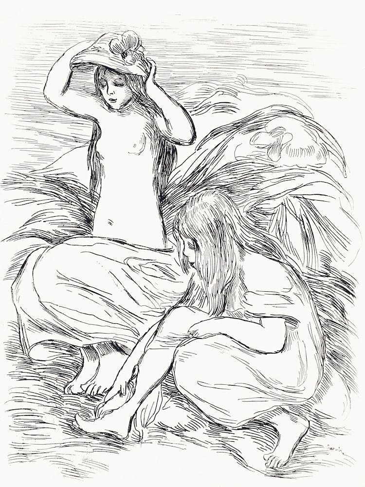 • Two Women Bathing (1895), Pierre Auguste Renoir