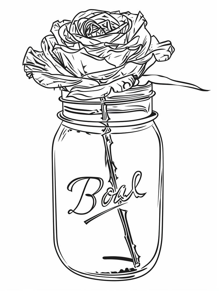 Rose In A Jar Line Drawing 1
