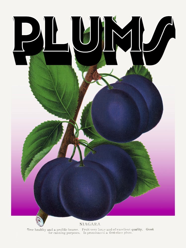 Plums Purple Graphic Wall Art Vintage Unique Eclectic
