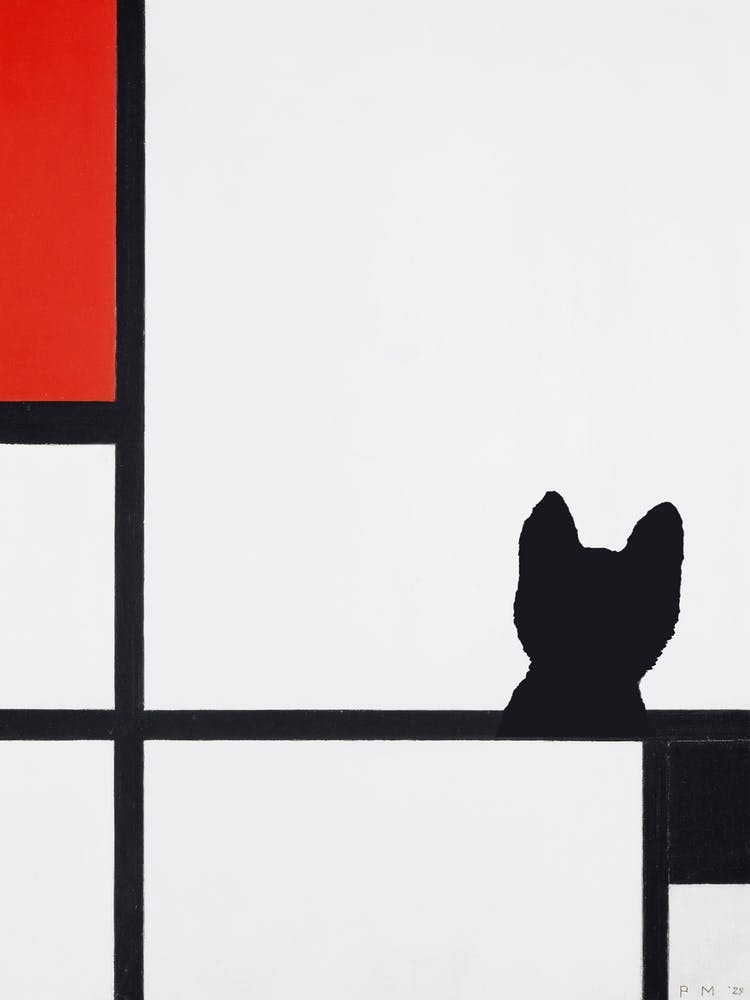Composition No I, With Red And Black Cat (1929), Piet Mondrian Inspired -