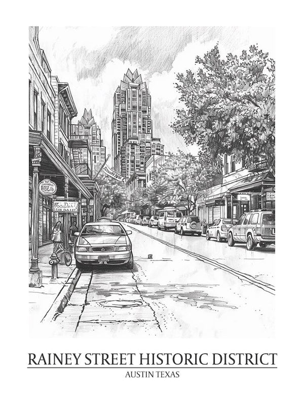 Rainey Street Historic District Austin Texas Black And White Drawing 1 Poster -