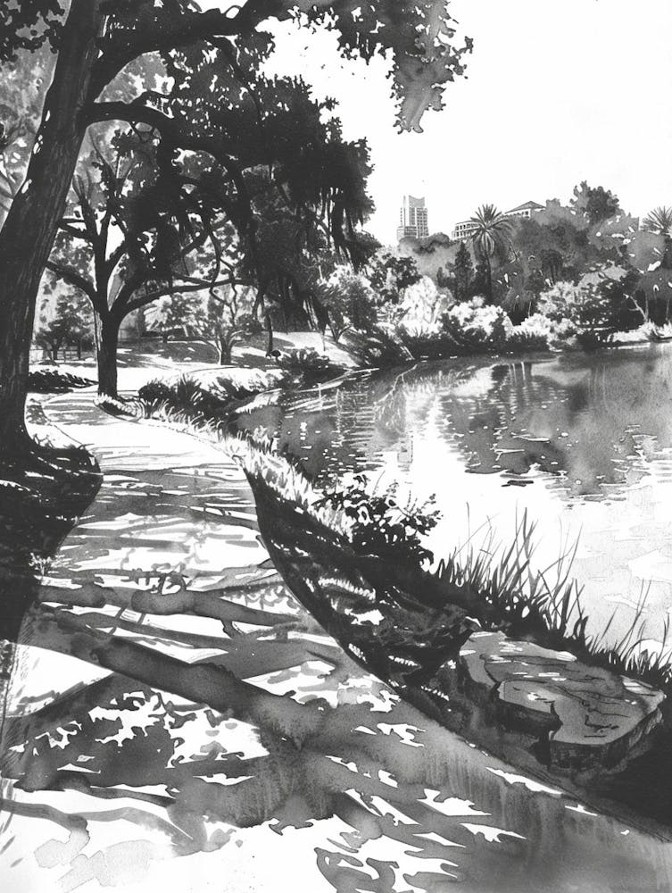 Zilker Metropolitan Park Austin Texas Black And White Watercolour 3 -