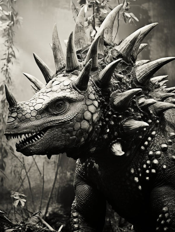 Beyond the whimsical, this collection also pays homage to the grand scale of these magnificent creatures. Explore prints featuring iconic dinosaur statues, like the peace sign-wearing Cabazon T-Rex or a colossal desert guardian, injecting a dose of vintage Americana and nostalgic wonder. For those appreciating the raw beauty and power of nature, a striking black and white Stegosaurus print captures the awe of ancient life with incredible texture and detail, making it a sophisticated addition to a more mature space or study dedicated to prehistoric themes.