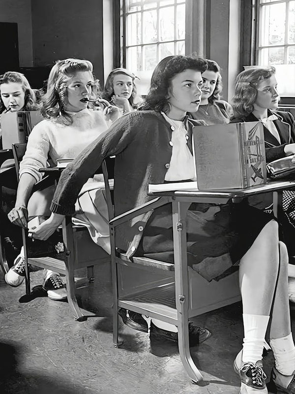 Step back in time with our captivating vintage education photos. This range includes evocative black and white photography that beautifully captures bygone eras of American education. You'll find images of dedicated librarians, earnest students in 1930s and 1940s classrooms, and budding musicians honing their craft. These historic art prints offer a poignant, nostalgic look at learning, celebrating the quiet dedication and universal spirit of youth. They create a wonderful focal point, perhaps in a home library, a history classroom, or a university office, adding depth and character.