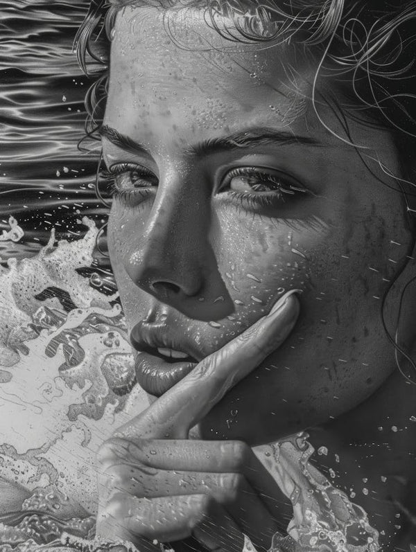 Within this compelling collection, you'll find a rich tapestry of artistic styles and techniques. From hyper-realistic black and white drawings that capture every subtle detail of a woman's face emerging from water, to stark, fragmented lines depicting internal struggle or the primal power of a wolf, each piece is a masterclass in expression. Discover the beauty of minimalist line art with figures conveying serenity or raw struggle, alongside powerful cross-hatching techniques that amplify profound emotion in black and white art prints. This diverse range ensures there's an expressive drawing to captivate every eye.