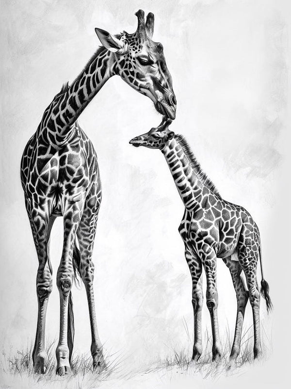 Pencil Portrait Of Giraffe Mother & Calf 1 -