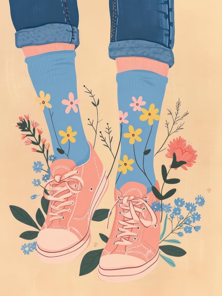 Spring In In The Air Illustration Pink Sneakers And Flowers 9 -