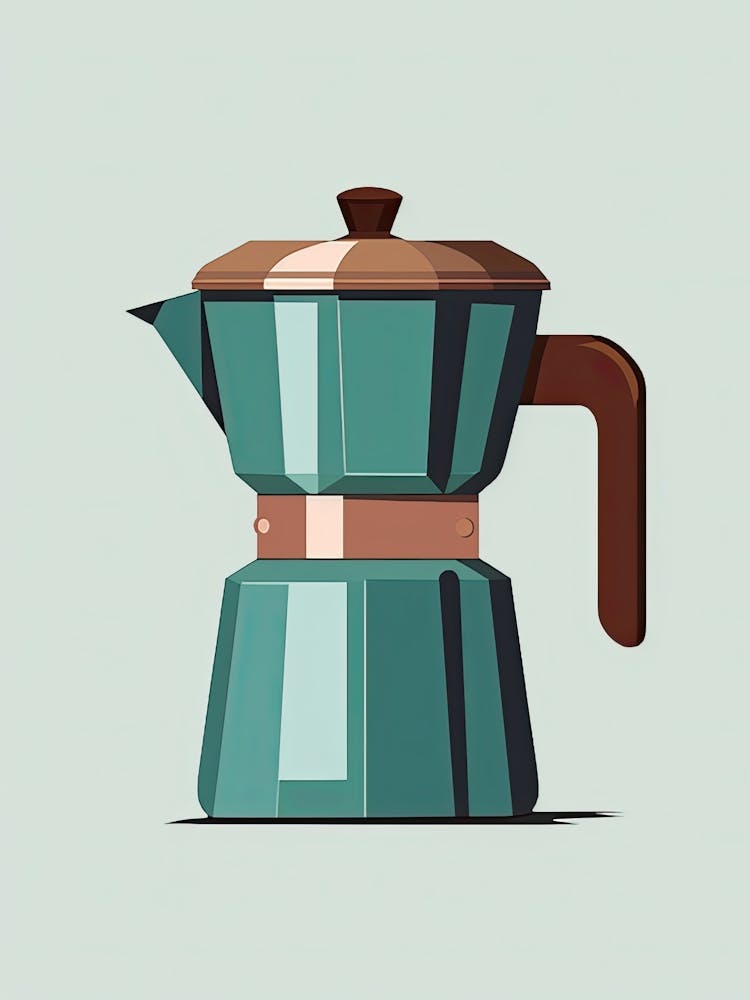 Italian Coffee Maker And Mugs Illustration Pink Background -