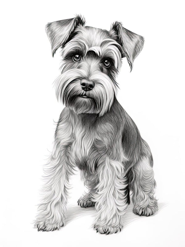 Miniature Schnauzer Dog, Line Drawing 1 -