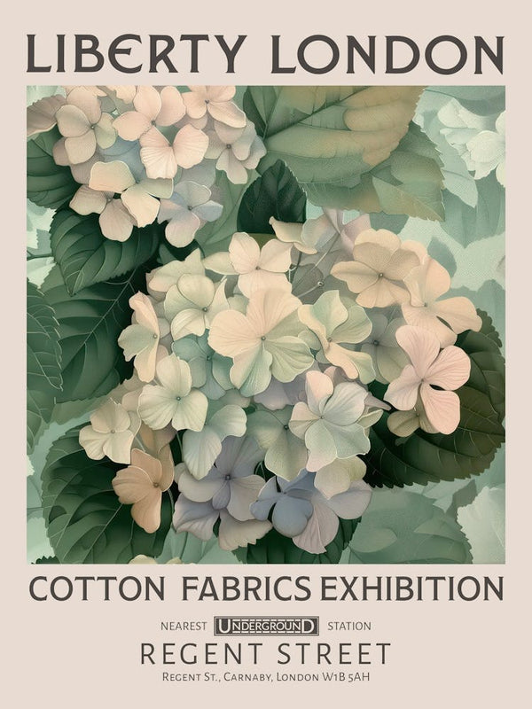Liberty London Print William Morris Textiles White Hdrangea Flower -