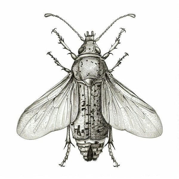 Our Insect Drawing Art Prints showcase a diverse range of artistic styles and techniques. You'll find meticulous scientific illustrations that highlight the delicate anatomy of dragonflies and beetles, often rendered with incredible precision in classic monochrome palettes. These black and white insect prints bring a timeless, sophisticated aesthetic to any room. We also feature folk-art inspired designs, where plump bees buzz amongst stylized wildflowers or dragonflies flutter with gentle charm, sometimes incorporating subtle color accents for a warm, inviting feel. These pieces speak to the enduring appeal of natural history art.