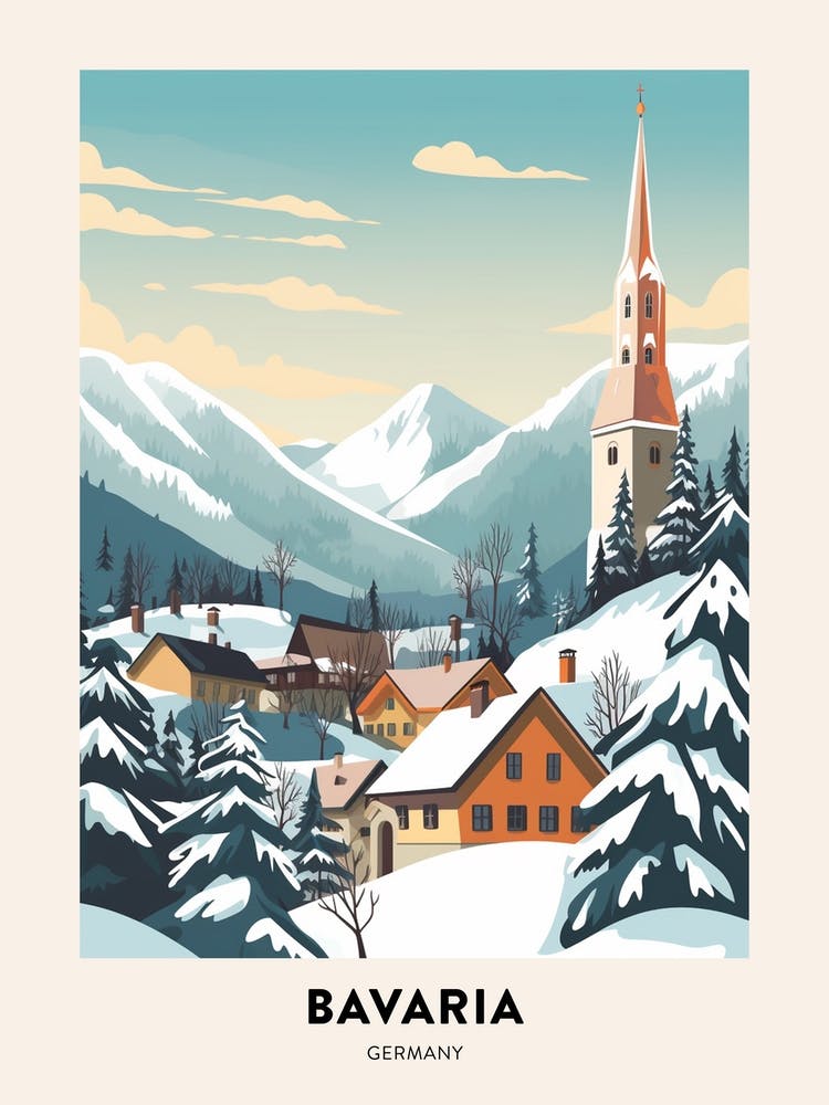 Vintage Winter Travel Poster Bavaria Germany 1 -