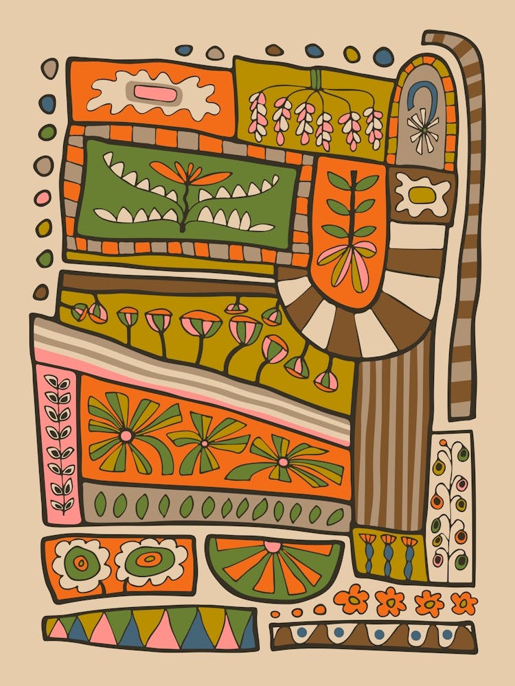 Flower Patches Retro Floral Earthy Mid Century Colors -