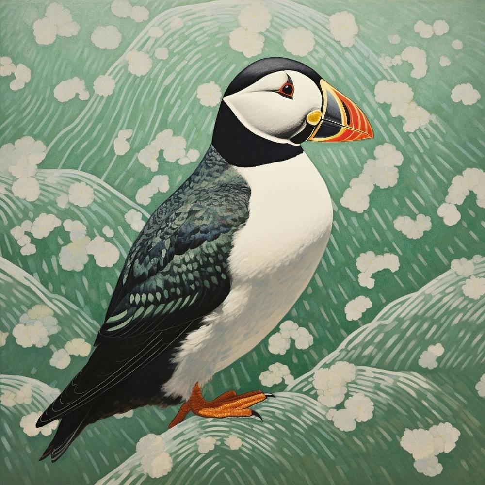 Ohara Koson Inspired Bird Painting Puffin 2 Square -