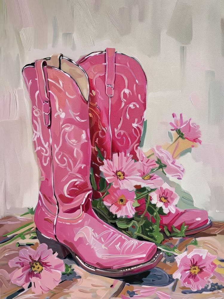 Pink Cowgirl Boots Painting Hot Pink Western -