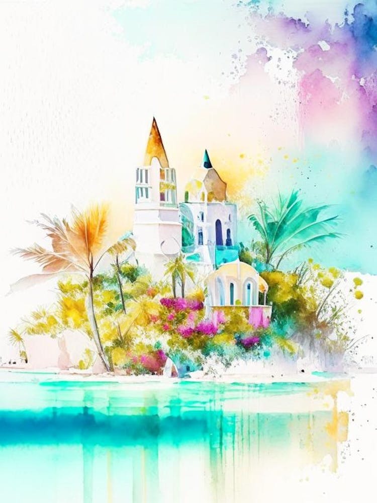 • Isla Mujeres Mexico Watercolour Pastel Tropical Destination