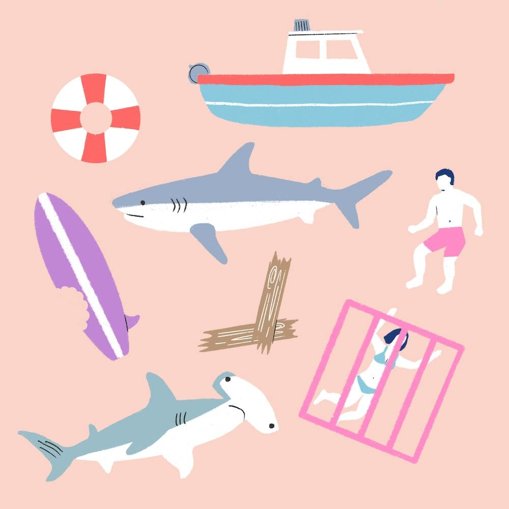 Thresher Shark Seascape Black Background Illustration 1 Poster -