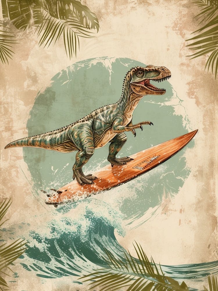 Vintage Iguanodon Dinosaur On A Surf Board 1 -