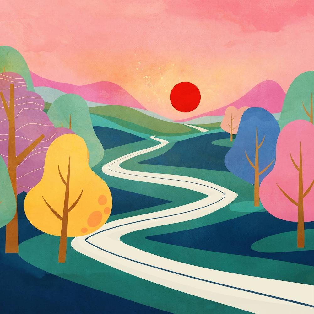 A Calm and Fun Landscape with Muted Colors and Organic Shapes -