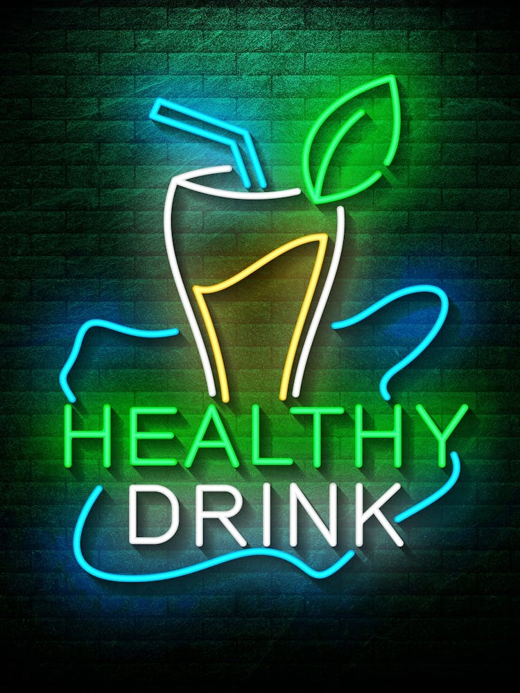 Healthy drink — Neon food sign, Food kitchen poster, photo art -