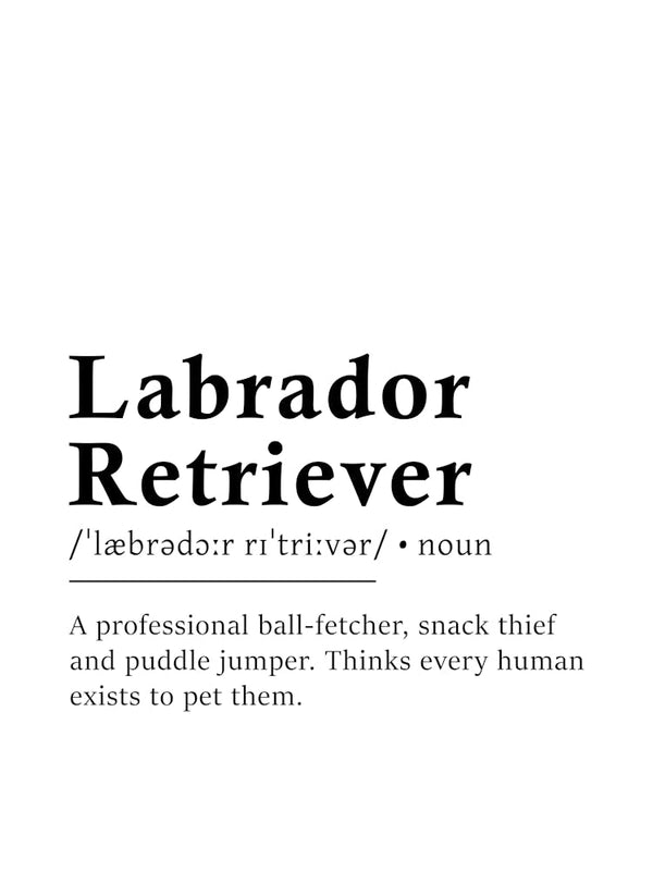 Within this collection, you'll find a delightful range of minimalist art that uses the power of text to evoke emotion and laughter. Many pieces feature witty definitions that cleverly deconstruct everyday concepts, from the adorable antics of a 'Labrador Retriever' to the universal truth of 'Naptime is my happy hour.' Other prints boast playful quotes and expressions, such as 'YOU HAD ME AT 'HEY YO!'' or 'Wine Not?', bringing vibrant energy or a subtle wink to your walls. The predominant aesthetic is one of clean lines and crisp typography, often presented in classic black and white prints for timeless appeal, alongside select pieces featuring bold colors like magenta or soft blue to suit diverse decor palettes.