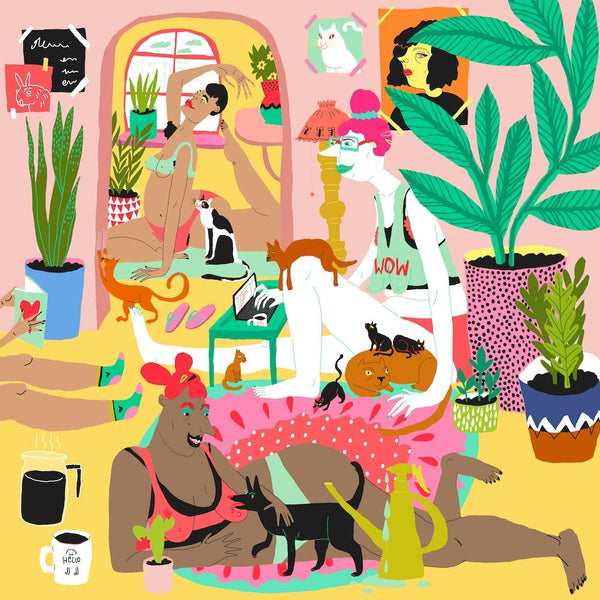 Beyond traditional romance, these illustration prints lovingly explore the broader spectrum of love. Discover cozy domestic scenes featuring pets and plant-filled havens, celebrating the gentle rhythm of being 'Home Together'. Our collection also features delightful animal art, from adorable mice nestled in wildflowers to whimsical cats and even a tender embrace with a sheep, highlighting the deep bonds we share with our animal companions. From joyful expressions of self-love represented by graphic hearts to the serene companionship of two women by a shimmering pool, these pieces honor all the connections that make life vibrant and full.