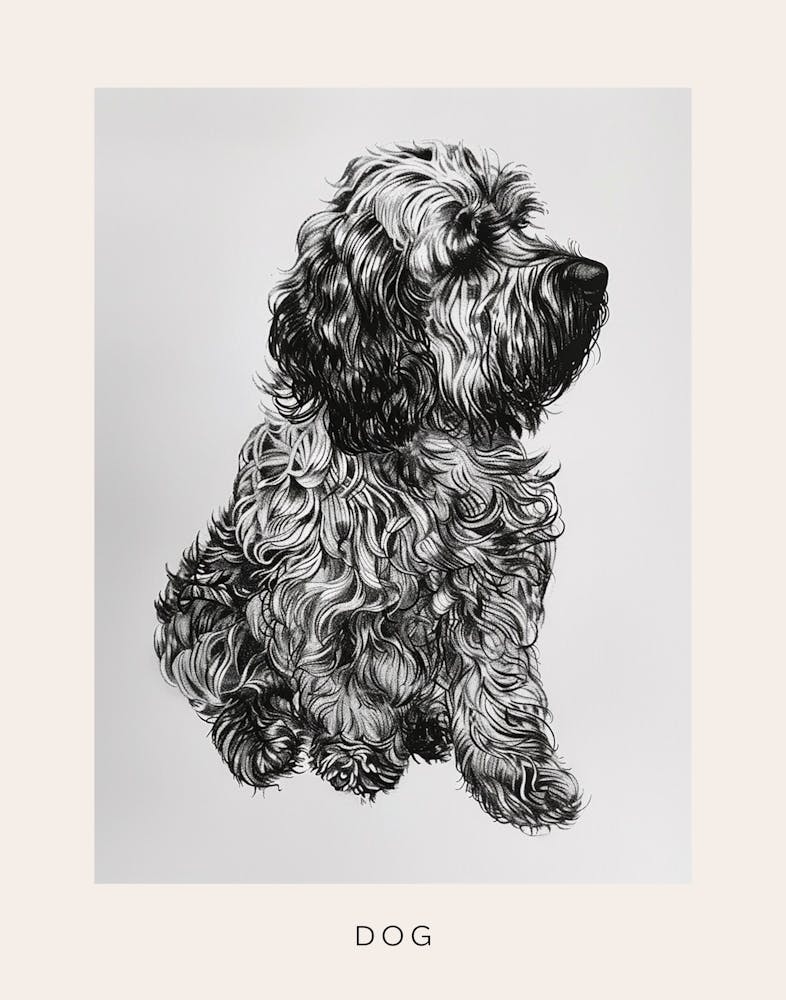Long Hair Furry Dog Line Sketch 4 Poster -