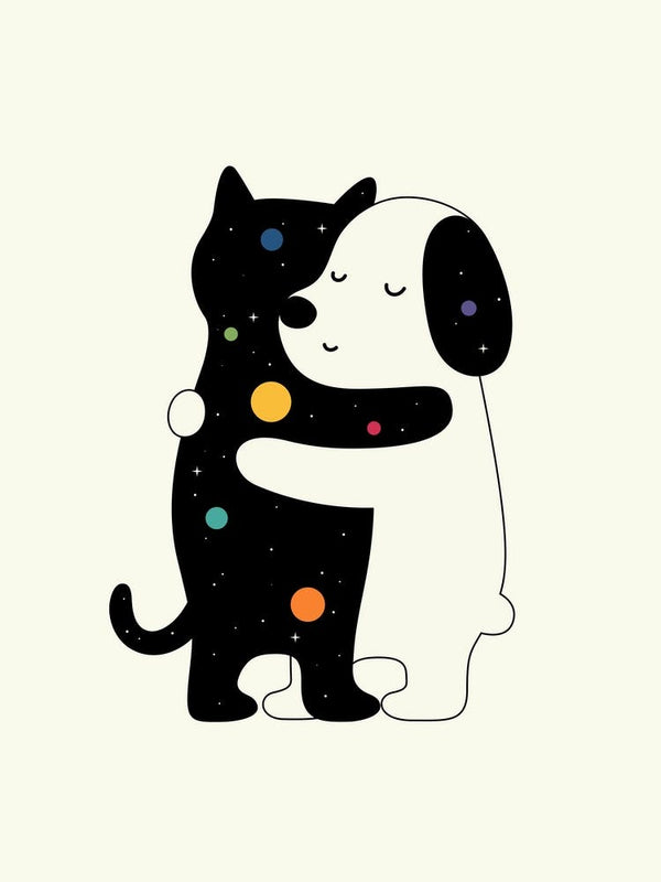 Dive into a world where whimsical creatures and beloved characters come to life through captivating illustrations. You'll find gentle animal art prints featuring everything from a loving koala mother and baby to a charming hare amidst wildflowers, or even a curious panda embracing a fox. Many pieces, like the black cat and white dog adorned with galaxies and planets, speak to universal themes of friendship and unity with a delightful, imaginative twist. These character-rich artworks are perfect for inspiring innocent dreams and bringing a playful, yet serene, atmosphere to children’s rooms or family areas.