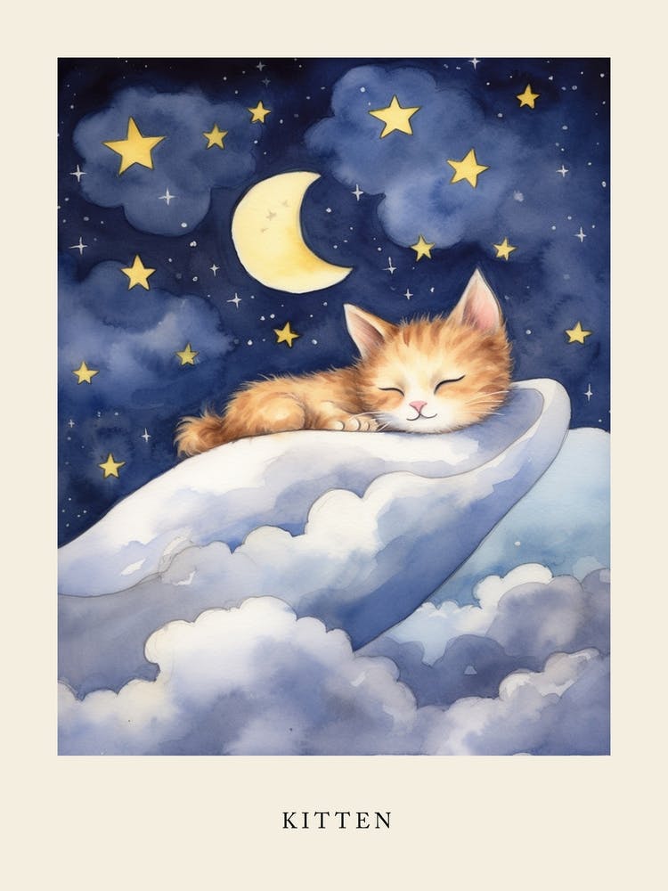 Baby Kitten 11 Sleeping In The Clouds Nursery Poster