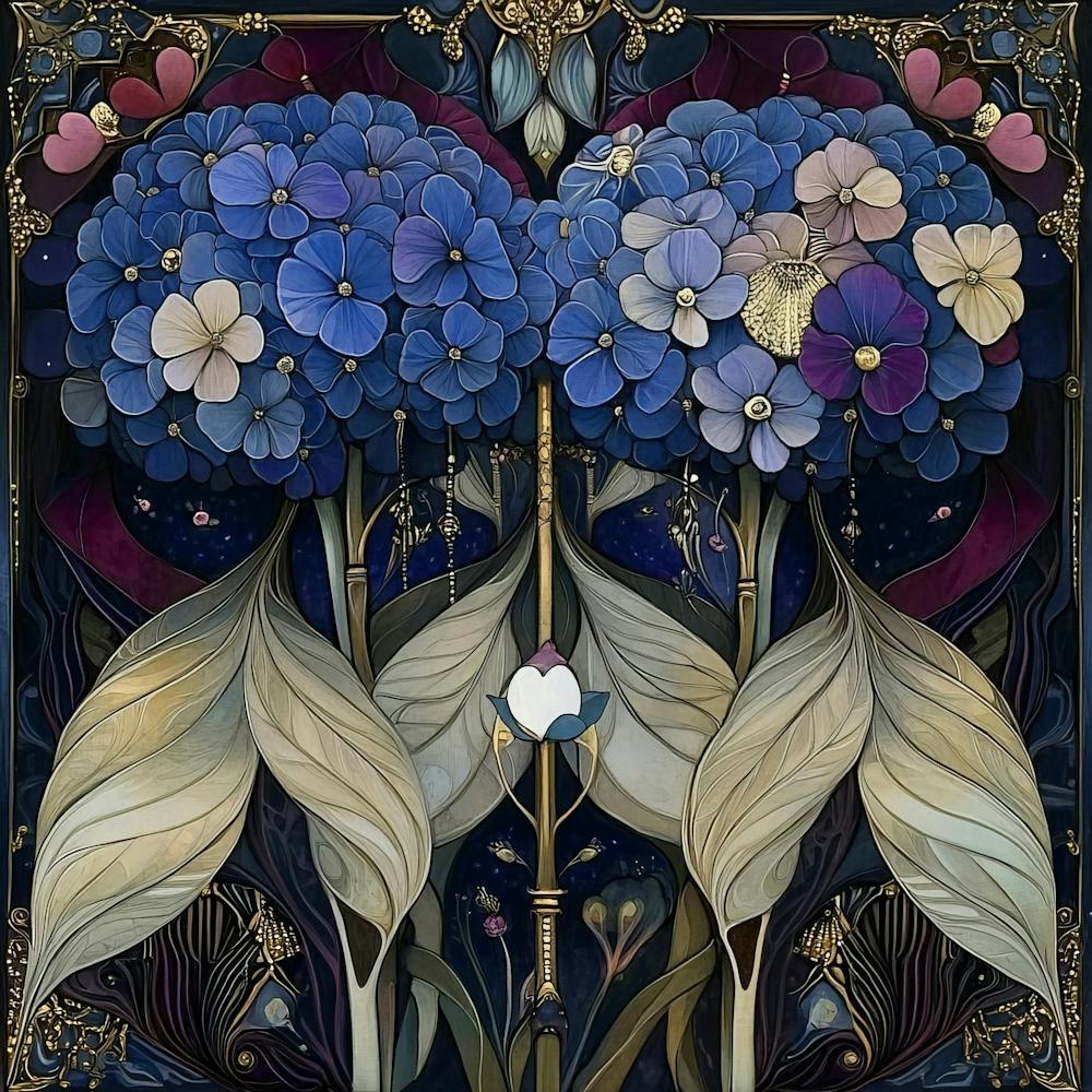 • Gustav Klimt Inspired Floral Art, Gold Leaf Mixed Media Flowers, Red, Pink, Orange, Teal, Abstract Botanical Wall Art for Modern Living Room, Bedroom, Office Decor, Bohemian Luxe Colorful Wildflowers 1