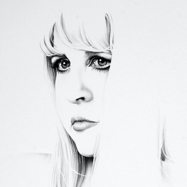 Stevie Nicks Fleetwood Mac Pencil Drawing Portrait Minimal Black and White -