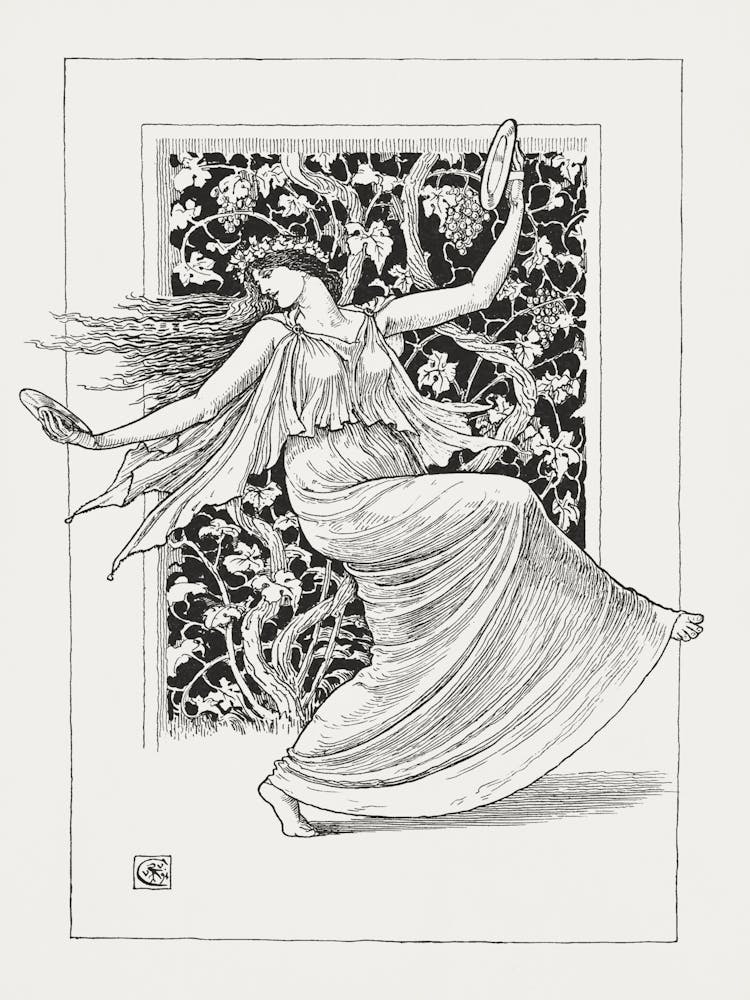 Vintage Sepia Nymph Drawing 1 -