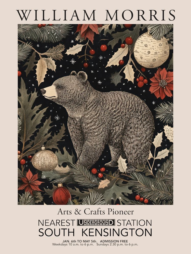 William Morris Prints Black Bear Christmas Gift Winter Vintage