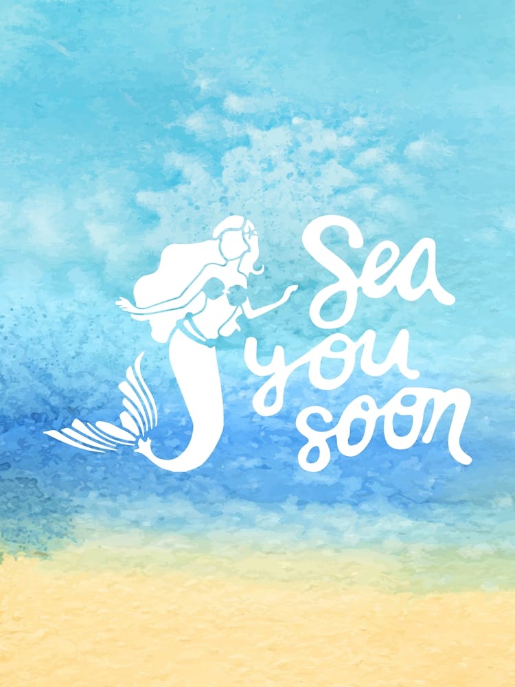 Sea you soon - travel poster, vector art, positive tropical motivation 22