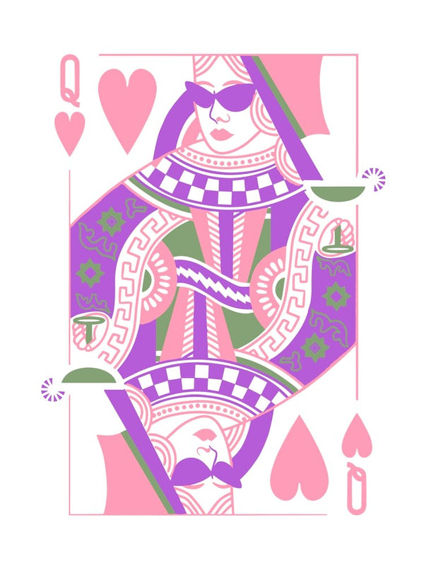 Queen Of Hearts Playing Card Maximalist Pink Print Lucky You Dopamine Decor
