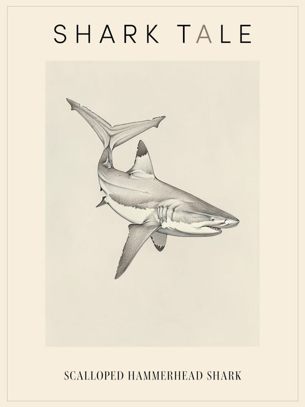 Scalloped Hammerhead Shark Vintage Pencil Illustration Poster -