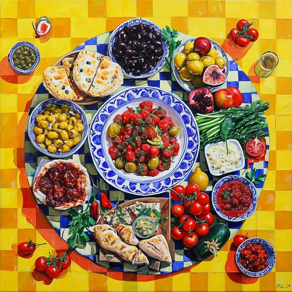 Mediterranean Mezze Selection Yellow Checkerboard 2 -