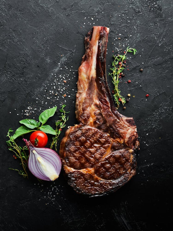 BBQ, Grilled steak on a bone — Food kitchen poster/blackboard, photo art 1 -