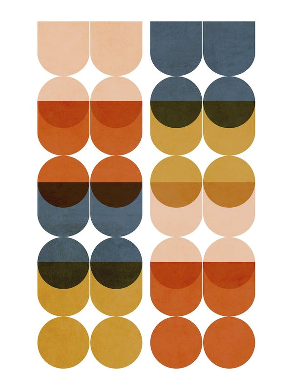 Mid Century Modern Geometric B35 In Navy Blue And Mustard Yellow (Rainbow And Sun Abstract) 01 -