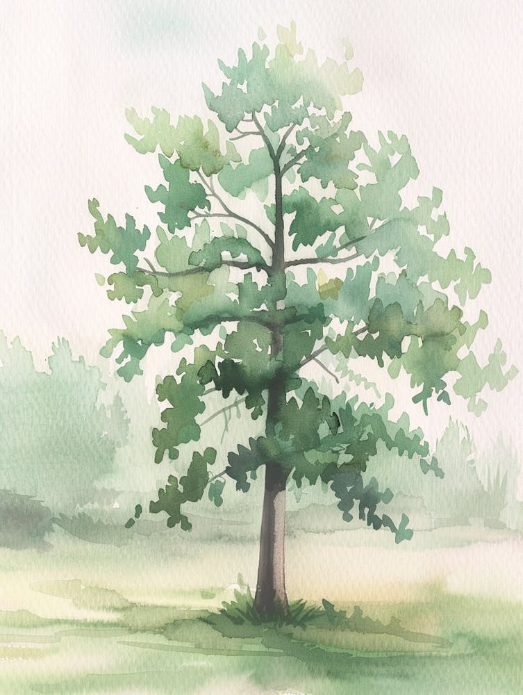 • Poplar Tree Atmospheric Watercolour Painting 1