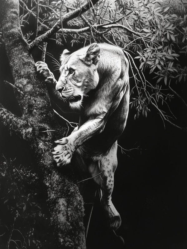 Barbary Lion Charcoal Drawing Panthera Leo Leo Climbing A Tree 1 -