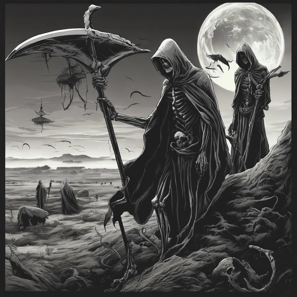 "Grim Reaper Art: A Haunting Black and White Illustration" -