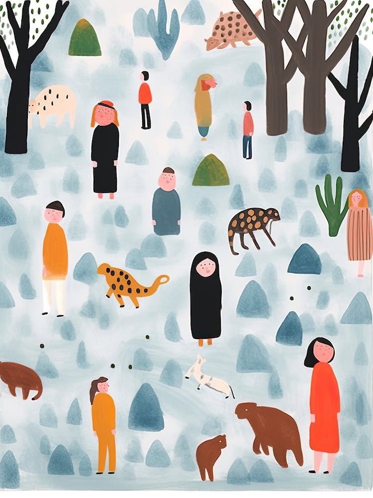 Beyond style, these animal art prints delve into a wealth of themes and emotions. Experience the regal majesty of a tiger or a fox under a golden moon, the serene warmth of a boy with a white horse, or the playful individuality of a zebra in a pink tub. You'll find art that embodies quiet strength, innocent curiosity, comforting companionship, and even the joyous energy of cultural folklore with our psychedelic Shisa dog. These thought-provoking pieces are designed to spark conversation, evoke cherished feelings, and infuse your space with a distinct narrative.