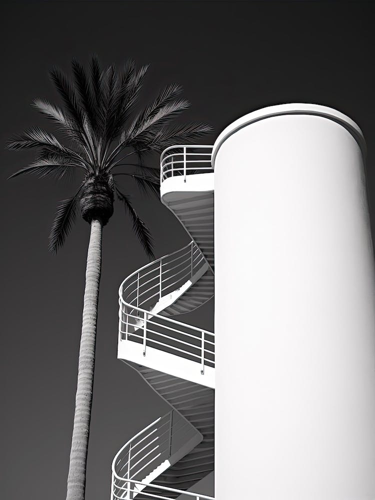 Dive into the timeless allure of desert modernism with prints showcasing Palm Springs' iconic architecture, featuring vibrant doors and sun-drenched pools that evoke leisurely days. For a touch of contemporary cool, explore minimalist compositions with bold color blocking, transforming simple details into striking geometric art. Or, infuse your space with the nostalgic luxury of 80s City Pop aesthetics, capturing serene poolside scenes with crisp lines and vibrant, flat colors reminiscent of Hiroshi Nagai's distinct style.