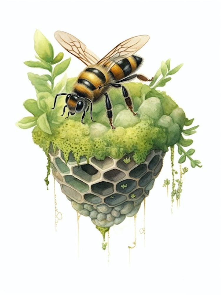Green Sweat Bee Beehive Watercolour Illustration 4 -